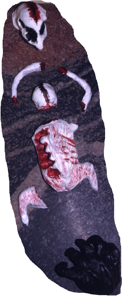 Isäni päähän oli talvisodassa, Ruhtinaanmäen taisteluissa, tehnyt uurteen kranaatinsirpale. Teosinstallaatiossa takanani on musta Kuoleman koura, joka on puristanut minua lapsena.