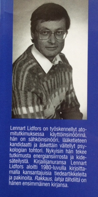Rakkaus, lahja tähdiltä kirjan kirjoittaja, Ruotsissa asuva Lennart Lidfors, työskenteli aluksi käyttöinsinöörinä atomitutkimuksessa. Hän on opiskellut lääketiedettä ja väitellyt psykologiasta.